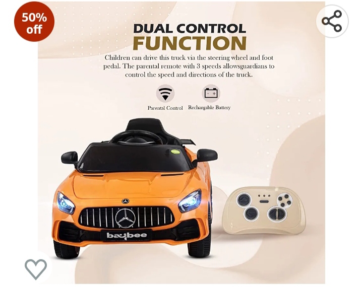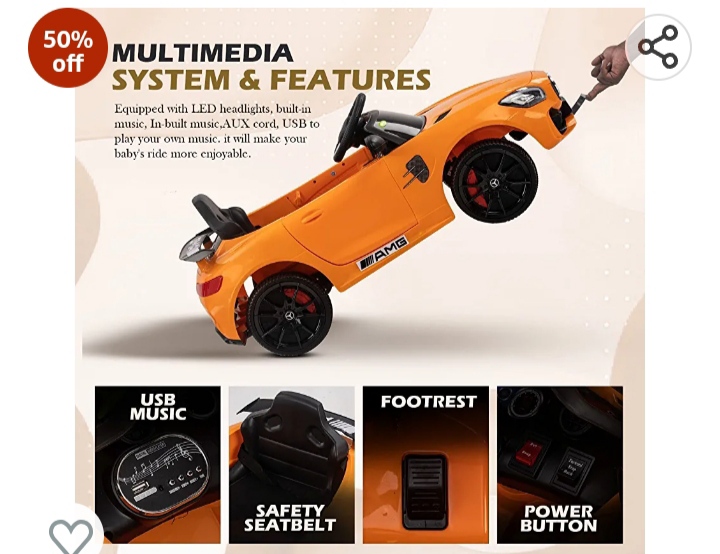 Baby Electric Car Rechargeable Car with Light, Bluetooth, USB, Music | Battery Operated Car for Kids 2 to 5 Years Boys Girls (Spyder_Orange)