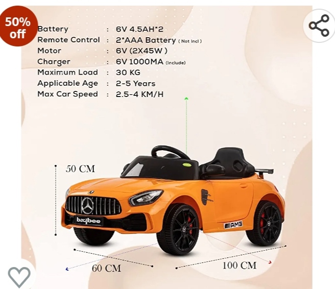 - SAFE RIDE : This battery operated car comfortable seat with safety belt provides large space for your baby to sit (the safety belt enclosed is only as a substance to increase children’s safety awareness, please keep an eye to your baby when he/she is playing).Suitable for Kids boys and grils from 2 to 5 years old. Speed: 3-5 Km/h, Weight Capacity: 50KG. Assembly Required. Only for 1 kid to sit.