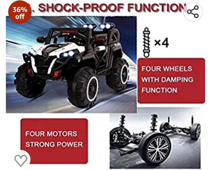 This Electric Jeep is one of the Big jeeps of all time and has big wheels with motor in each tire. Jeep has total 6 Motor.; Children of age 2 to 8 Years can drive this car manually. This Ride on jeep have 70 kg weight carrying capacity